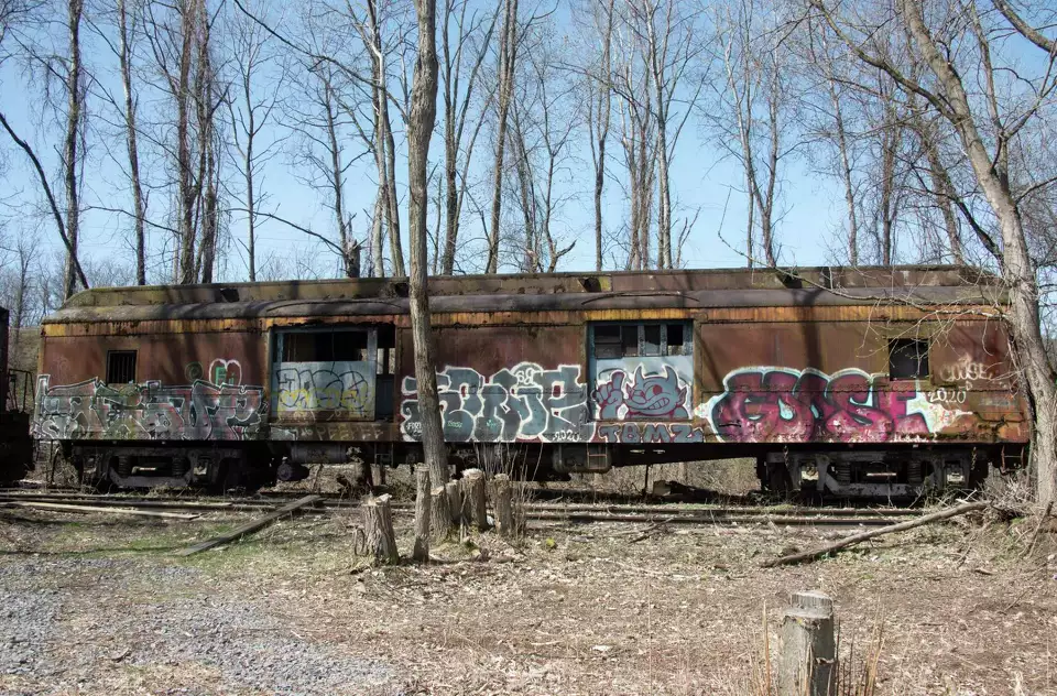ALBANY — Nestled in the woods of Beacon Island, with the Hudson River shimmering in the distance, a line of forgotten rail cars rests on tracks choked by dry weeds.